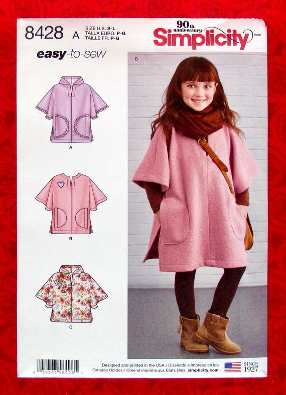 Simplicity Easy Sewing Pattern 8428 Girl Pullover Ponchos Etsy